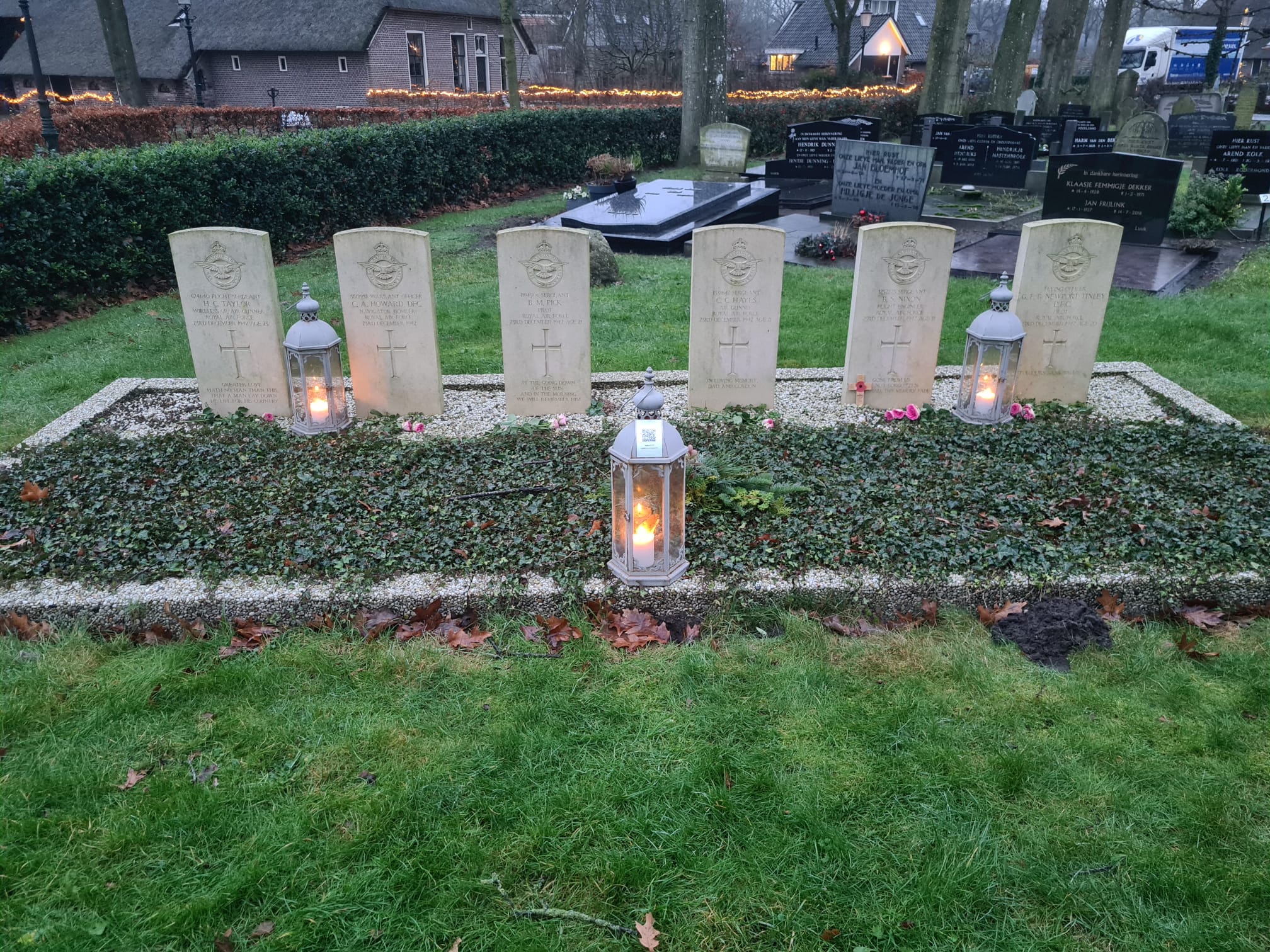 Op deze pagina ziet u een overzicht van oorlogsgraven en Stolpersteine, elk met een foto en een verhaal. Door op de foto's te klikken, kunt u de bijbehorende audio beluisteren, waarin het verhaal van de persoon of het graf of de achtergond bij de Stolperstein wordt verteld. Deze verhalen geven een bijzonder inzicht in de geschiedenis en in het persoonlijke verhaal van de gesneuvelde militairen en individuen.